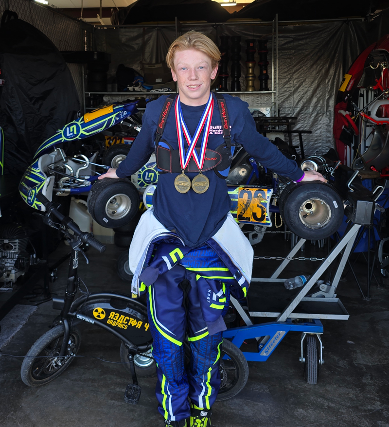 * Freshman Noah Schenck recently competed in the final race of his Go Kart season, the KRA 14 at New Castle Motorsports Park. He won 1st place in both the KA Jr 100 class and the 80CC shifter class. Noah finished the season as class champion in KA 100 JR and runner-up in 80CC shifter. Out of the 21 races he competed in this season, he achieved seven first-place finishes.